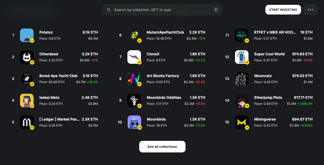 Our index shows that NFTs on the fractional markets have given back all their returns since secondary trading opened in September 2021. Fractional assets dipped to a zero percent return last week, there’s been a slight bounce with a 50-100% return for all IPOs across Otis and Rally.